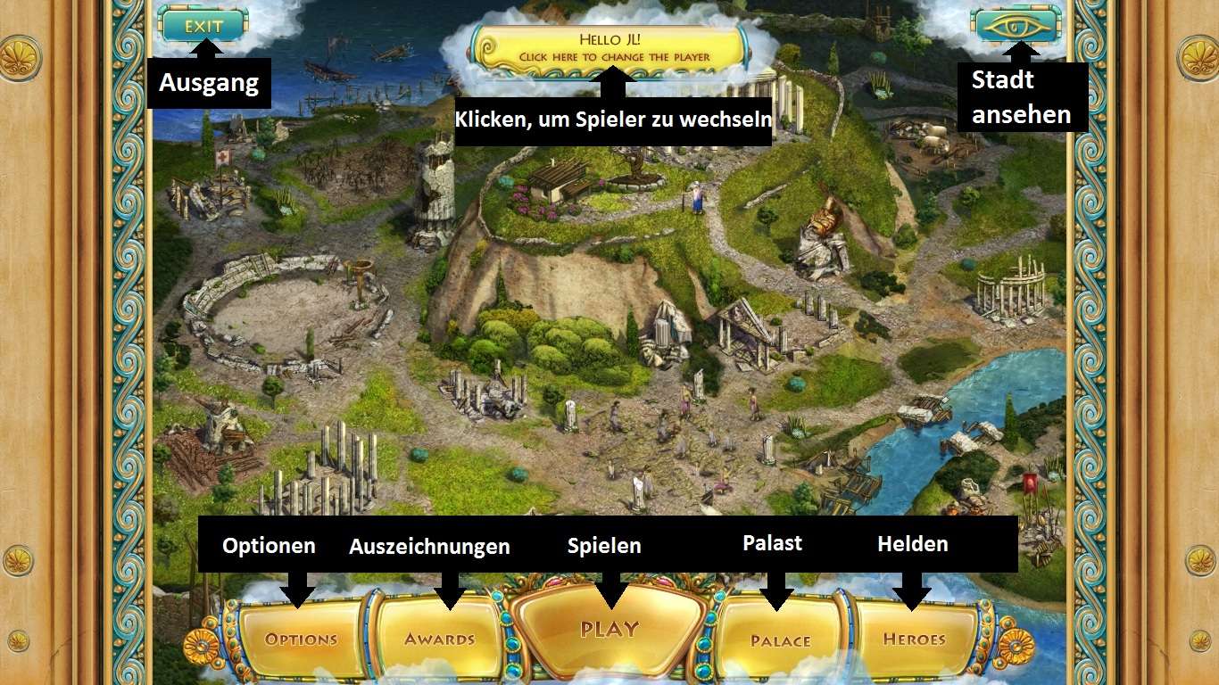 - Heroes - Helden: Bedienst Du diesen Knopf, kannst Du sehen, welche Götter und Helden Du bereits erspielt hast und welche noch gesperrt sind.