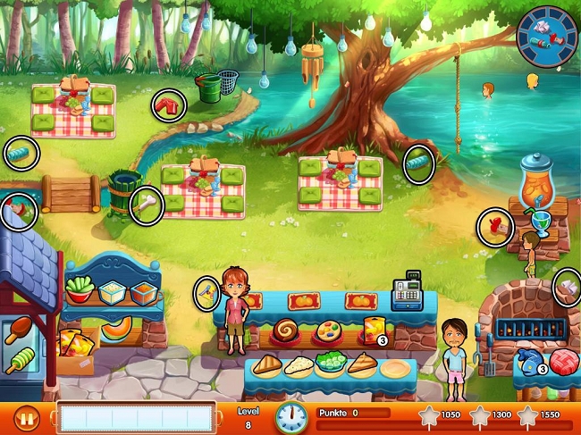 - Bediene 3x 3 Kinder hintereinander - wenn du also Kinder hast, bediene sie und ziehe sie den anderen Kunden vor. Gezählt werden die Kinder - ein 3-er-Tisch besteht ebenfalls aus 3 Kindern. Du brauchst das Geld, um das 3-Sterne-Ziel zu erreichen und musst zusätzlich alles an Boni mitnehmen, was nur geht.