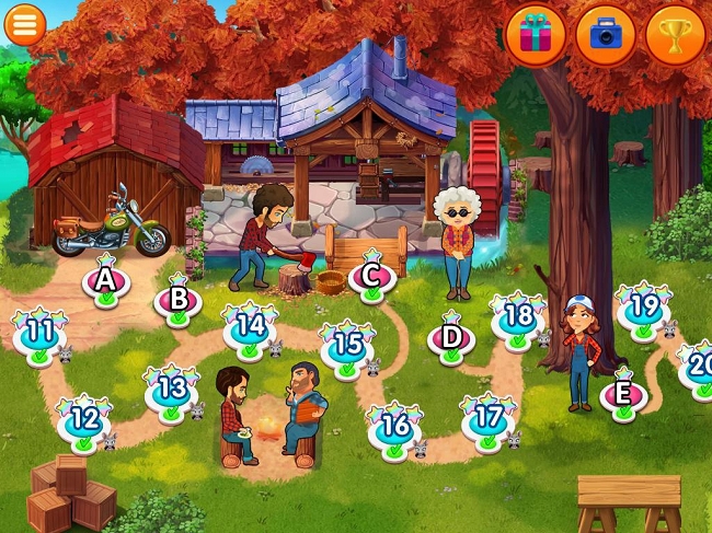 - Erhalte 4 Boni für Schnelligkeit hintereinander - erledige es am besten sofort, säge also zu Beginn kein Holz, sondern warte auf die Bestellung des ersten Tisches, erledige dann die nächsten 3 Bestellungen sofort.