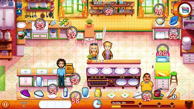 - Sind alle Tische und Stationen am Ende sauber, erhältst du 20 Münzen.