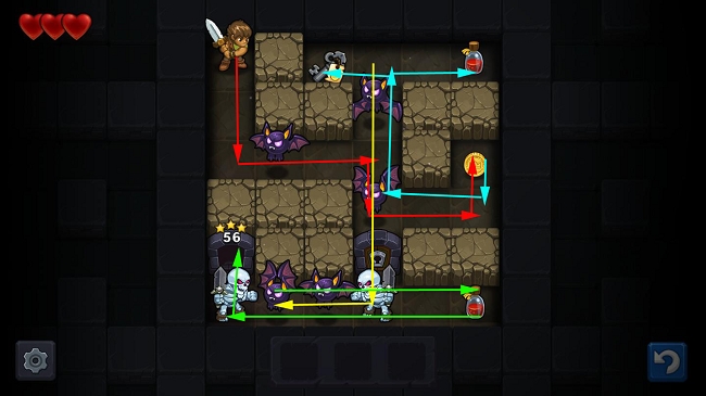 - Skelette, Monster und andere Hindernisse nehmen dir, wenn du sie aus dem "eg räumst, 1 oder 2 Herzen weg.