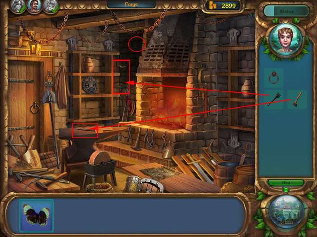 - Lege die Fackel in die Halterung an der Wand. Nun siehst du den Schmetterling und kannst ihn anklicken.