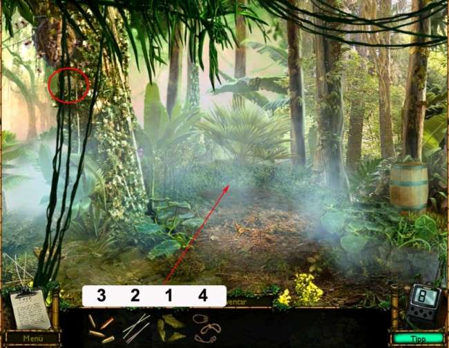 - Wenn du den richtigen Weg gewählt hast, ist die Säule, wenn du keine Bananen mehr hast, unten und du kannst die Sonnenscheibe nehmen.