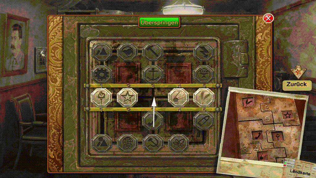 - Um den Safe zu öffnen drehst der Ringe so, damit das Wappen der Sowjetunion wiederhergestellt wird.
