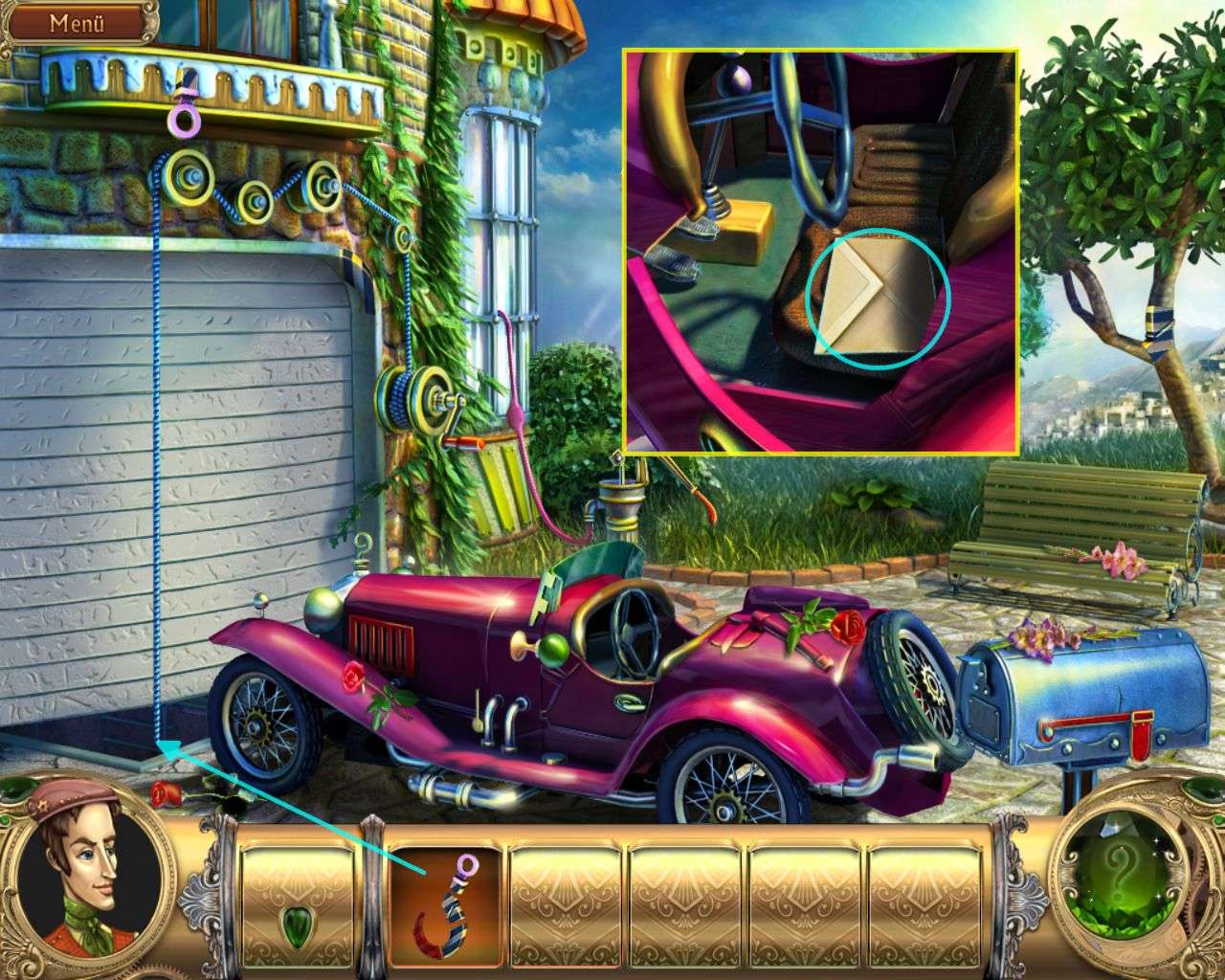 Lupe: Hier kann etwas näher betrachtet werden, ein Fenster klappt auf. Es handelt sich dann entweder um eine Detailansicht oder um ein Minispiel (Lupe + Puzzlestück).