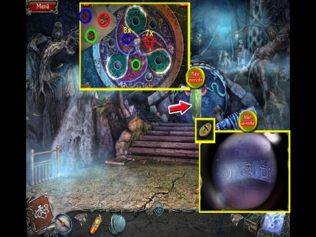 - Zahnrad: Dieses Icon bedeutet das du hier ein Rätsel zu bewältigen hast.